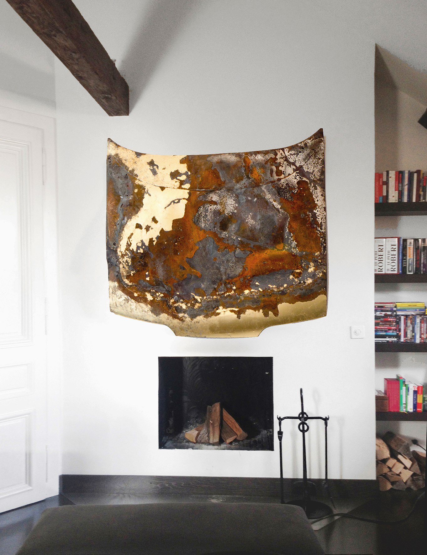 Rusting Values N.6 Porsche Cayenne par Boris Gratry | Déc 5, 2012 | Artwork, wallworks | 0 commentaires Rusting Values N.6 Porsche Cayenne Burned car hood & Gold leaf 23.75Crt dim: 120 x 139 cm 2012