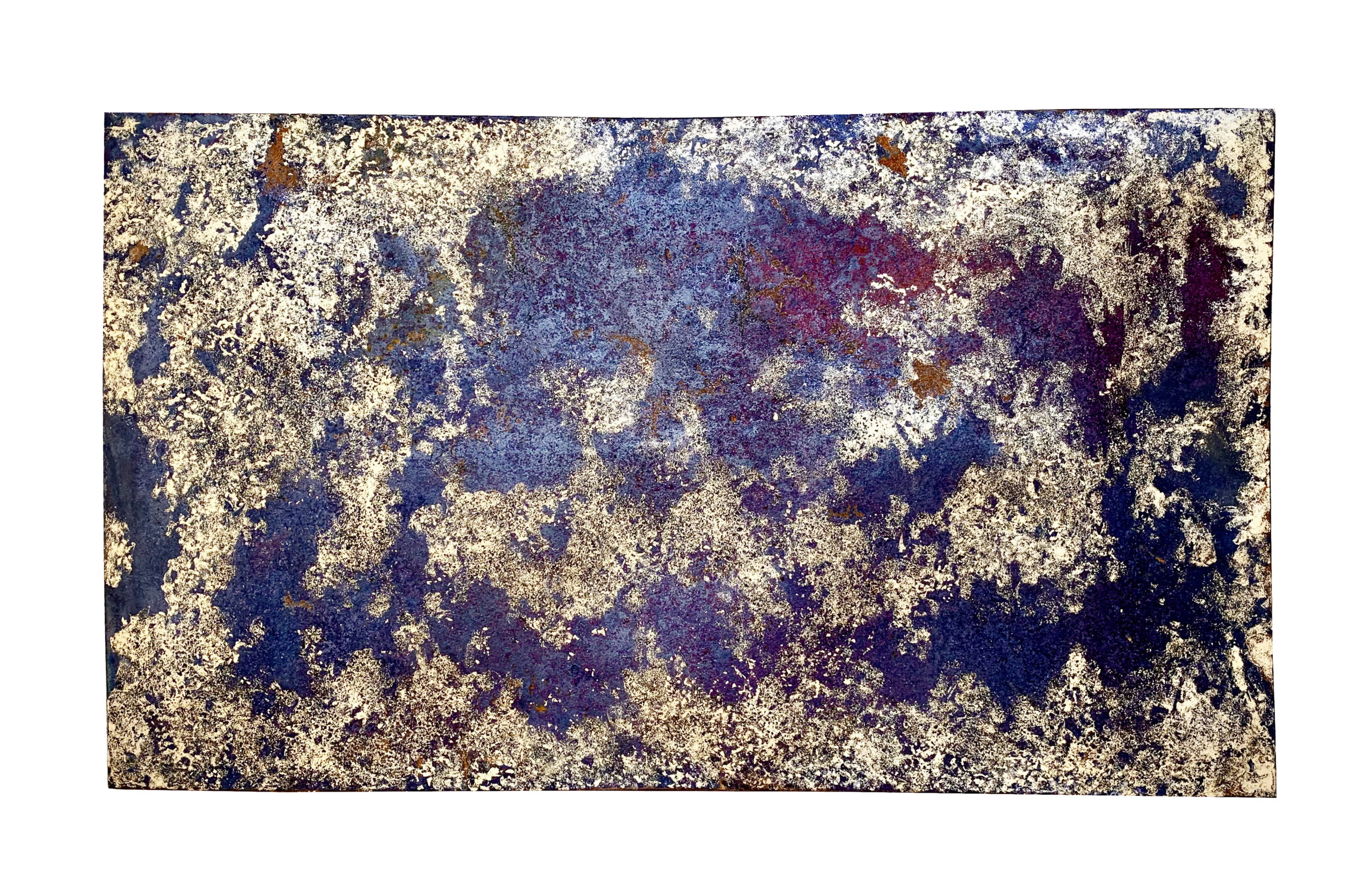Space par Boris Gratry | Oct 20, 2021 | Artwork | 0 commentaires Space Calamine Steel & Gold leaf 23.75Cts Dim: 75 x 58 x 2.5 cm 2021